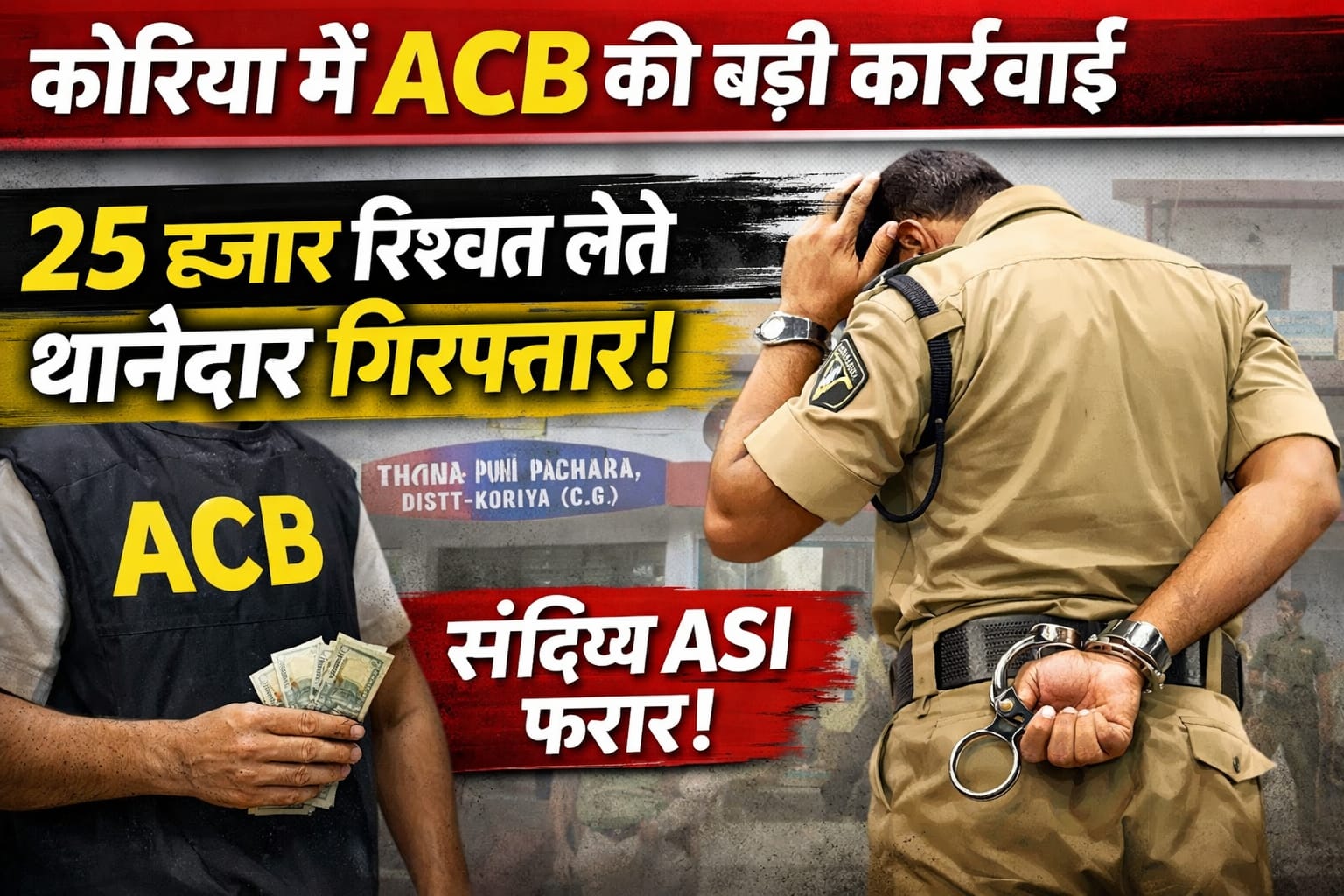कोरिया (छत्तीसगढ़)/सुनील शर्मा कोरिया जिले में एंटी करप्शन ब्यूरो (ACB) ने बड़ी कार्रवाई करते हुए थाना बचरा के थाना प्रभारी अब्दुल मुनाफ को ₹25,000 की