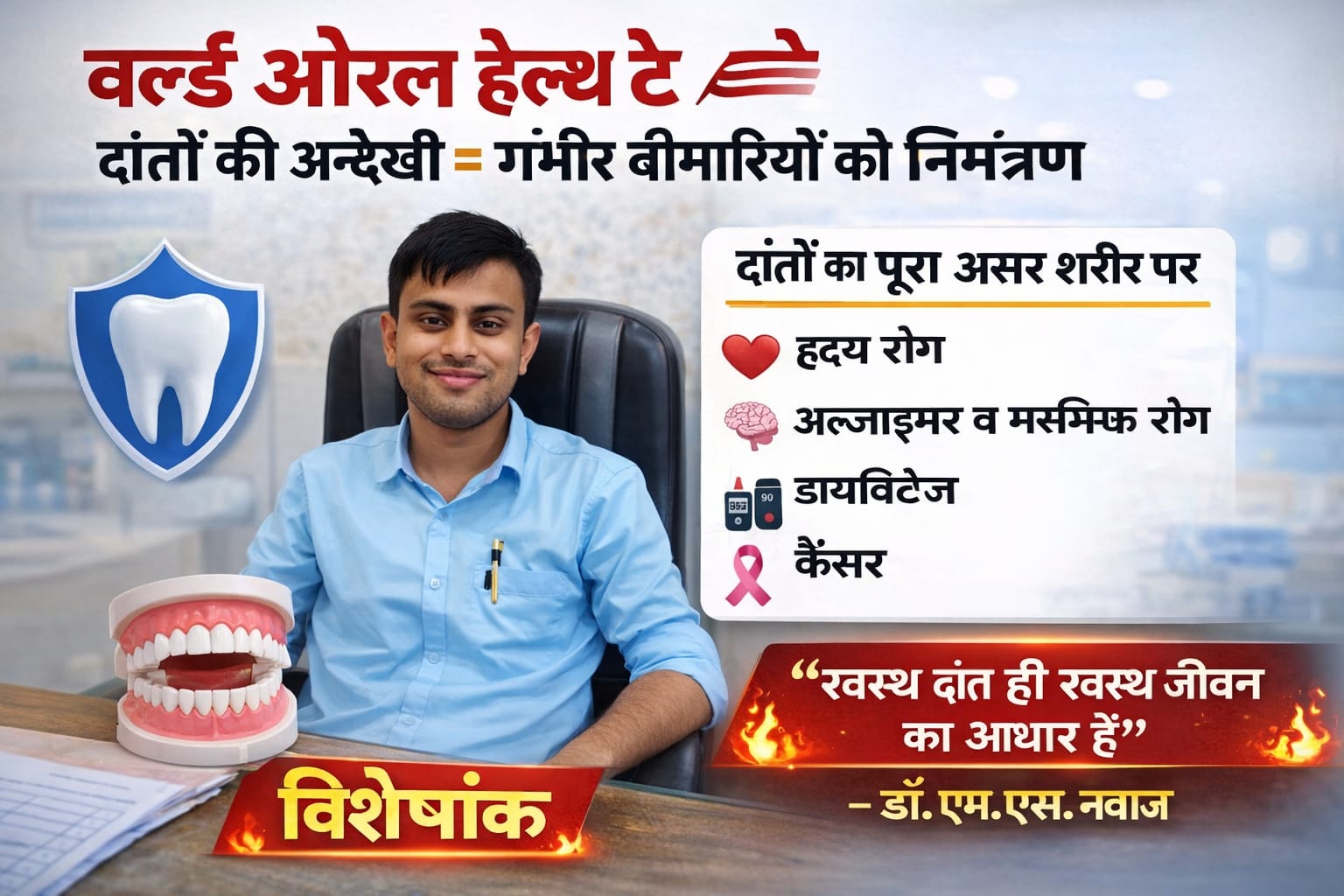 वर्ल्ड ओरल हेल्थ डे/विशेषांक: दांतों की अनदेखी शरीर की अन्य गंभीर बीमारियों को खुला निमंत्रण – डॉ. नवाज
