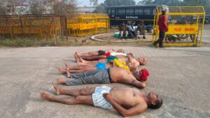 मऊगंज/प्रकाश द्विवेदी –  मऊगंज कलेक्ट्रेट कार्यालय के सामने 15 दिसंबर से चल रहा धरना आज 18 दिसंबर को अचानक उग्र हो गया। जब दोपहर करीब 3 बजे प्रशासन की हठधर्मिता को देख प्रदर्शनकारियों का सब्र टूट गया और अनशन स्थल से कलेक्ट्रेट कूच कर उसके मुख्य द्वार पर निर्वस्त्र होकर लेटते हुए विरोध प्रदर्शन किया,जिससे प्रशासन में हड़कंप मच गया। इस दौरान प्रदर्शनकारियों ने प्रशासन में भ्रस्टाचार और अराजकता से इतना खफा हो गये की यहां के कलेक्टर के साथ ही “मोहन चोर है, मोदी चोर है” जैसे जमकर नारे भी लगाए। और कलेक्टर संजय जैन पर कई गंभीर आरोप लगाए स्थिति बिगड़ती देख एसडीएम राजेश मेहता और एसडीओपी सची पाठक भारी पुलिस बल के साथ मौके पर पहुंचे और प्रदर्शनकारियों को बलपूर्वक हटाते हुए गिरफ्तार कर लिया। प्रशासन द्वारा पहले से ही कलेक्टर द्वारा धारा 163 लागू की गई थी, बावजूद इसके प्रदर्शनकारी धरना स्थल से कूच कर सीधे कलेक्ट्रेट कार्यालय पहुंच गए।