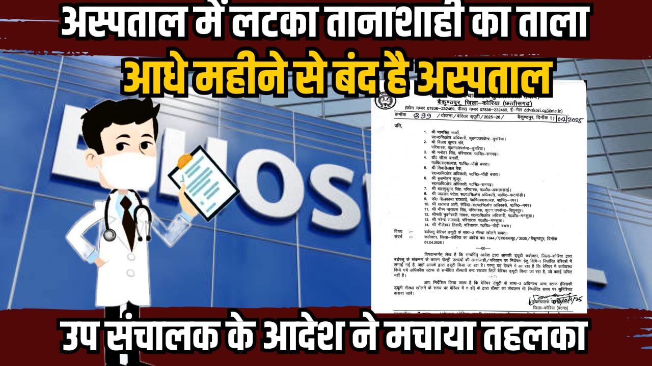 अस्पताल में लटका हैं तानाशाही का ताला, उप संचालक के आदेश का कर्मचारियों ने किया विरोध, आधे महीने से बंद हैं अस्पताल April 15, 2025